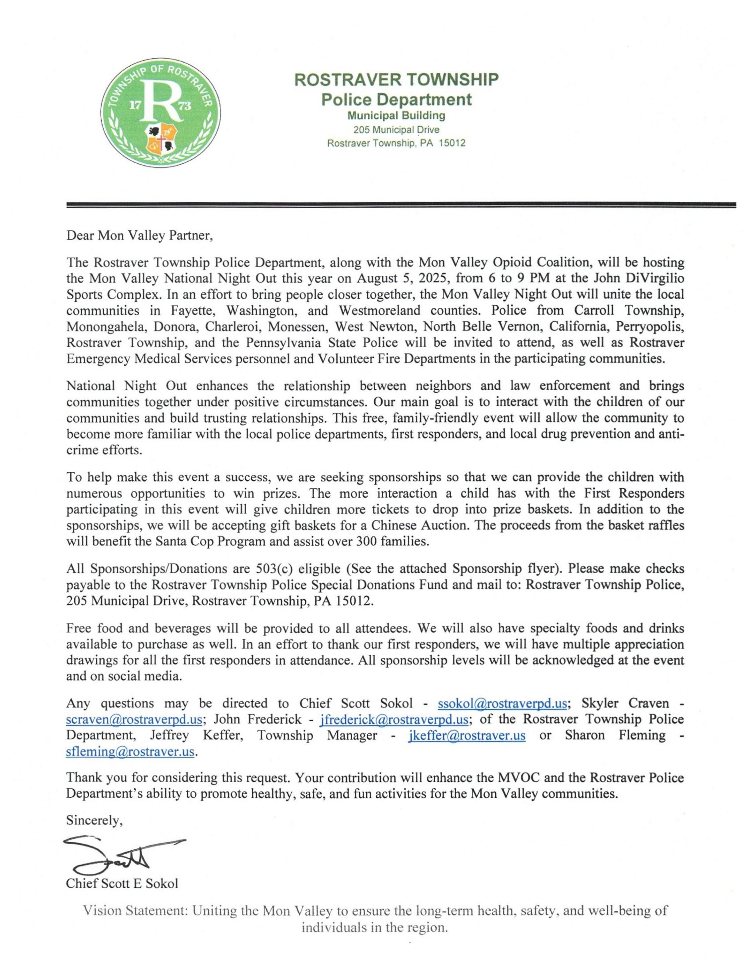 Hosted by Rostraver Township Police Department & the Mon Valley Opioid Coalition
